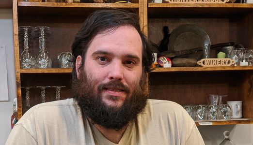 Another owner, he's a bricklayer by trade, but works at the winery in the tasting room when needed, as well as farmers markets and festivals. He also works in the production building prepping all the equipment for winemaking.